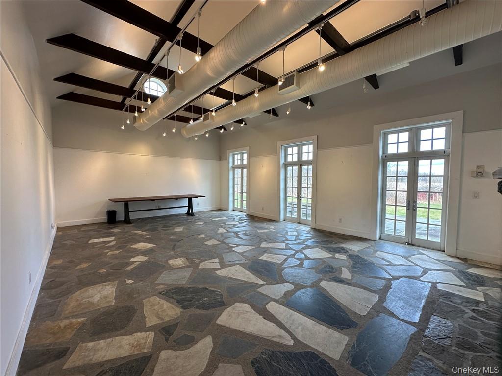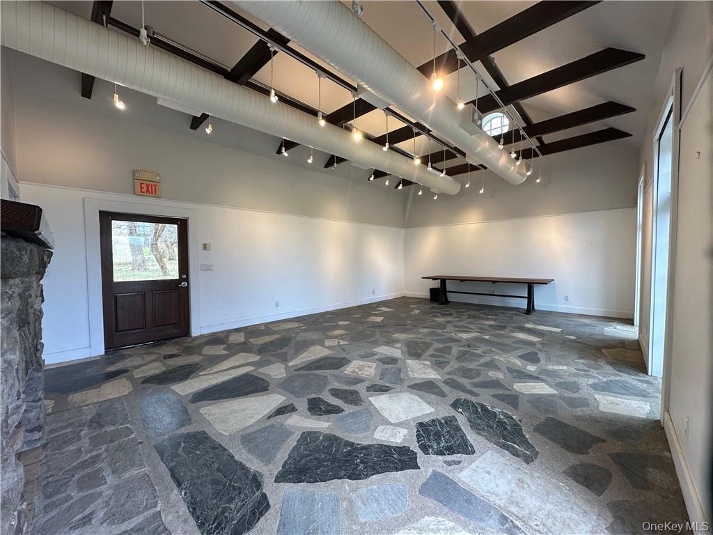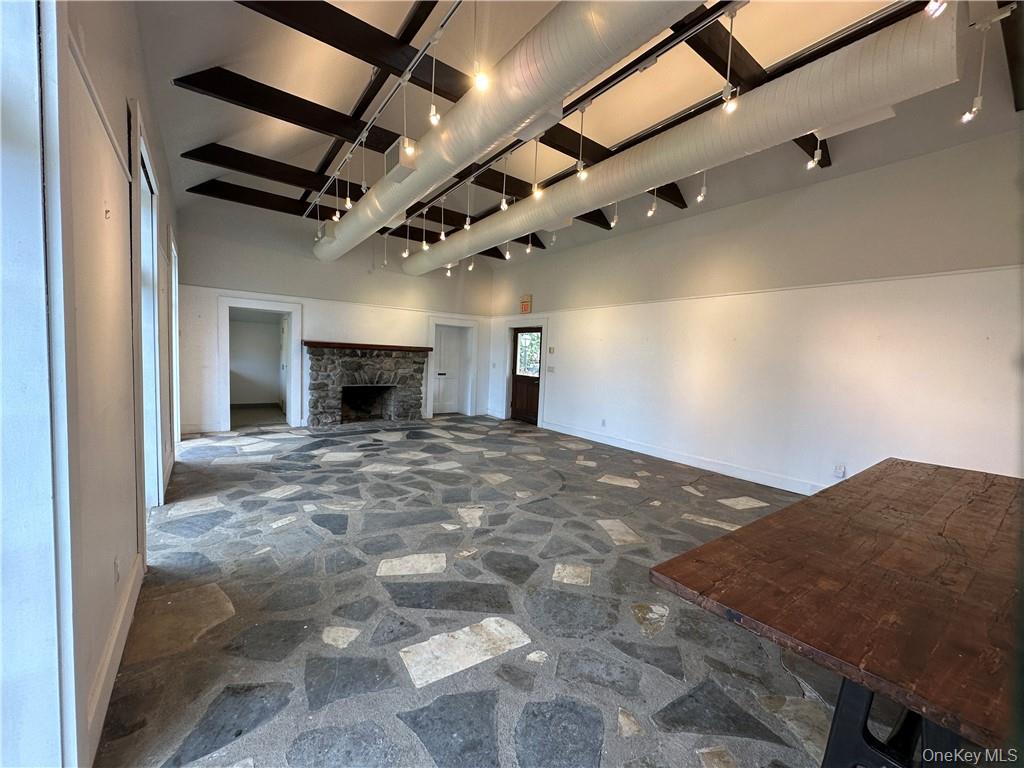 Welcome to your new creative haven nestled in the historic Seligmann property in Sugar Loaf, NY! This commercial space embodies the essence of inspiration with its bright and airy ambiance, boasting an open concept design that connects indoor and outdoor spaces.\nUpon entering, you'll be greeted by a spacious, light-filled room. The large doors gracefully open onto a charming patio, inviting in natural light and offering a serene outdoor retreat. This versatile space features a convenient bathroom and a small kitchenette. Whether you're envisioning a gallery showcase, a design studio, or an arts-focused organization, this space offers endless possibilities to bring your creative aspirations to life. This space is steeped in history and cultural significance, offering a unique backdrop for your endeavors. Parking available on-site. OneKeyMLS 960725