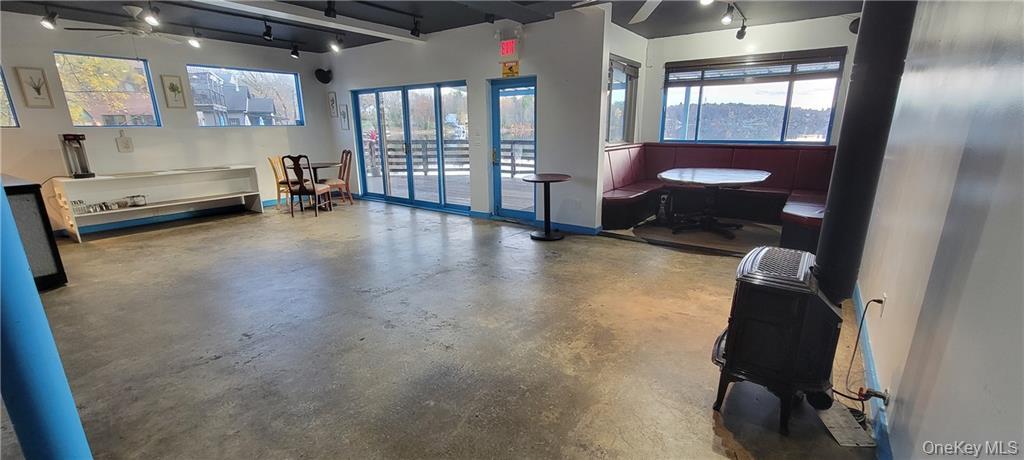 This is one of the best lakefront retail/restaurant spaces available on one of the most popular lakes in all of the Sullivan County Catskills! Two stories offer plenty of indoor and outdoor accommodation for seating, entertaining, catering and parties. The space is currently set up for restaurant with some equipment and walk-in, two restrooms, and a bar on each level. Sweeping lake views and amazing sunsets enhance this extraordinary location. This offering is in a well-known dining destination dubbed \"Restaurant Row\" and is a HOT spot strip in the Town of Bethel. Perfectly situated literally around the corner moments away from the famous Woodstock music festival site of 1969, now Bethel Woods Center for the Arts; known for world class entertainment and popular 1960 OneKeyMLS 961728
