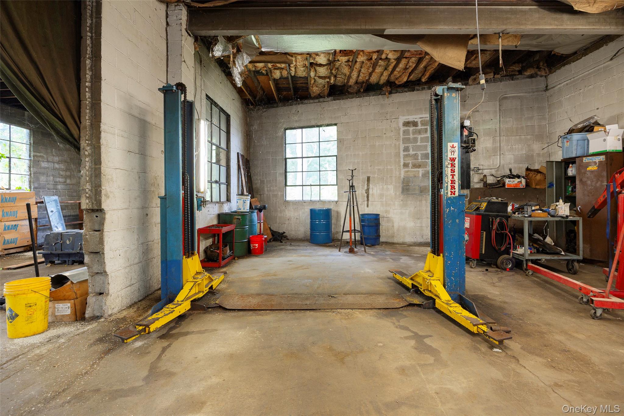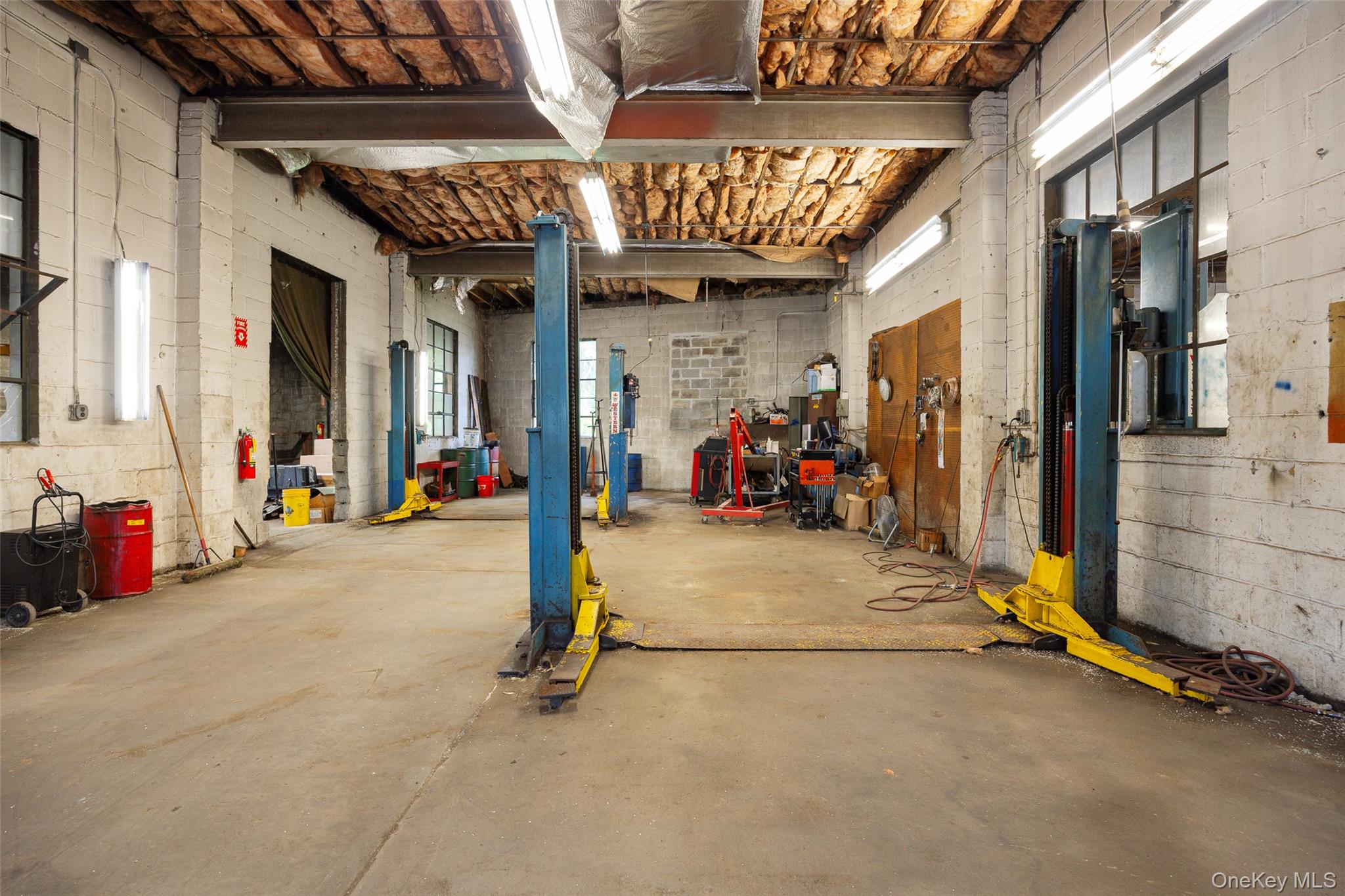 Centrally located warehouse with three large bays, workshop & two story office space. 21' ceiling with three overhead doors and five lifts for a turnkey operation. Office space includes first floor waiting room, two offices & restroom plus second floor office and restroom. Block structure with municipal water/sewer & natural gas. Arlington Town Center zoning conducive to a multitude of uses. Easy access to Route 55, Route 44 & Taconic State Parkway. An exceptional opportunity for use in the current configuration or redevelopment. OneKeyMLS 916252