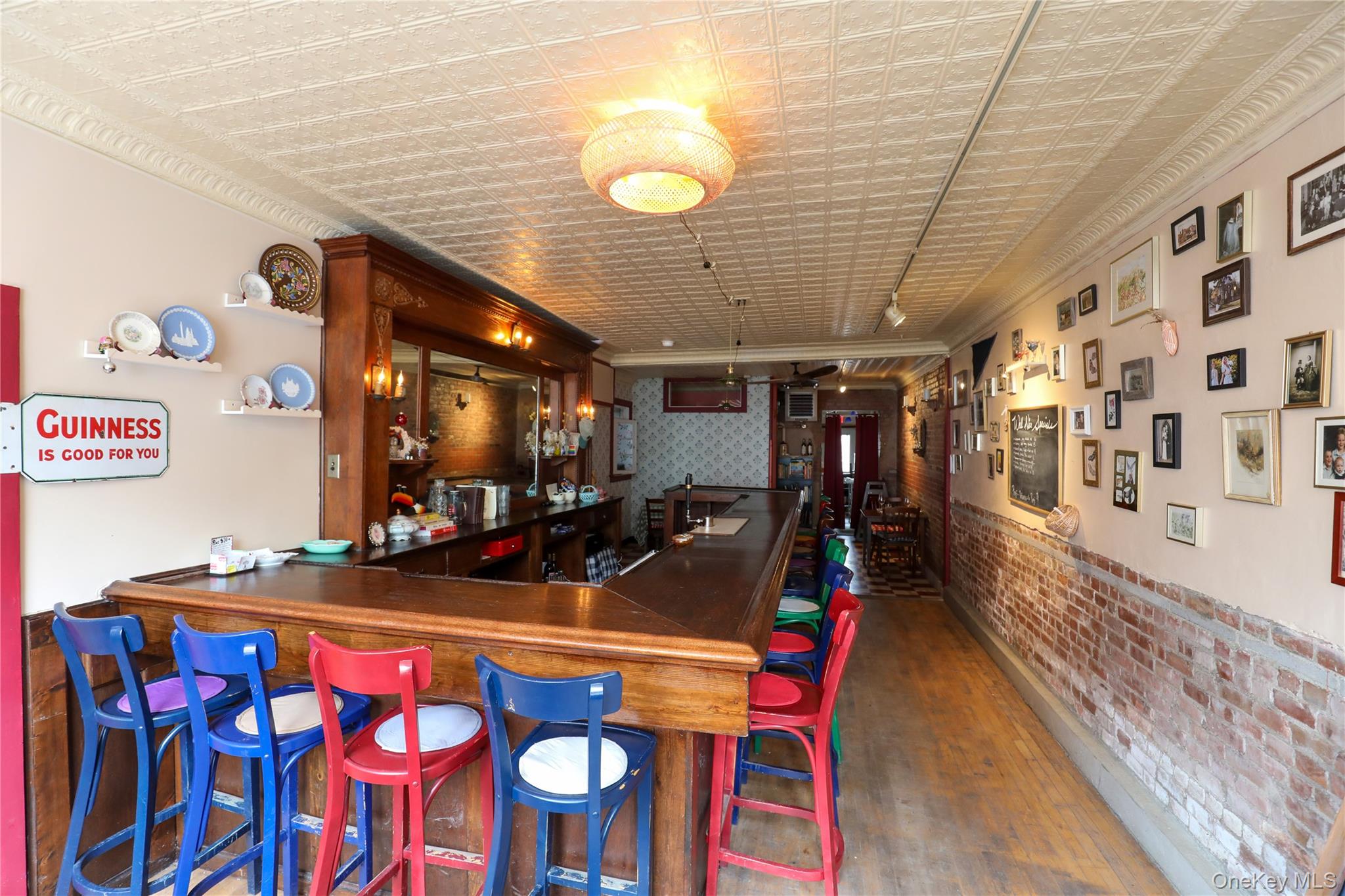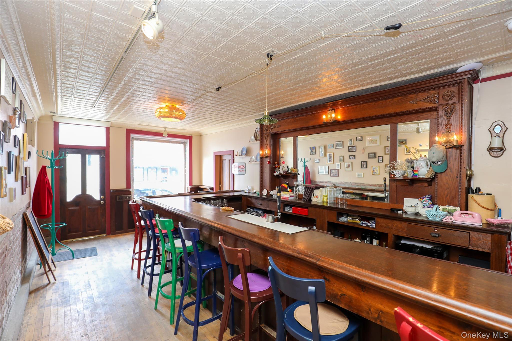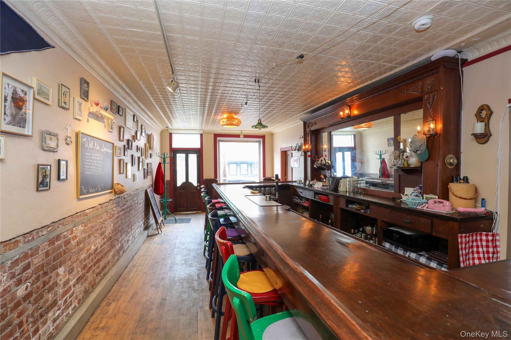 Now available in the heart of Rosendale, this approximately 1,650 SF storefront offers a unique opportunity to lease a fully built-out restaurant or hospitality space. The space features a welcoming front bar with exposed brick, original tin ceilings, hardwood floors, and strong natural light, along with a secondary dining area that allows for flexible seating. The rear includes a functional commercial kitchen with prep and dish areas, supporting a wide range of food and beverage concepts. The layout includes two bathrooms--one off the main area and a second located at the end of the rear hallway--as well as a washer and dryer conveniently situated off the bar. Positioned on Main Street, the property benefits from steady foot traffic and a vibrant local business environment. Lease terms are 3-5 years with a four-month security deposit; utilities are not included, and the full equipment list is included in the documents. OneKeyMLS 978876