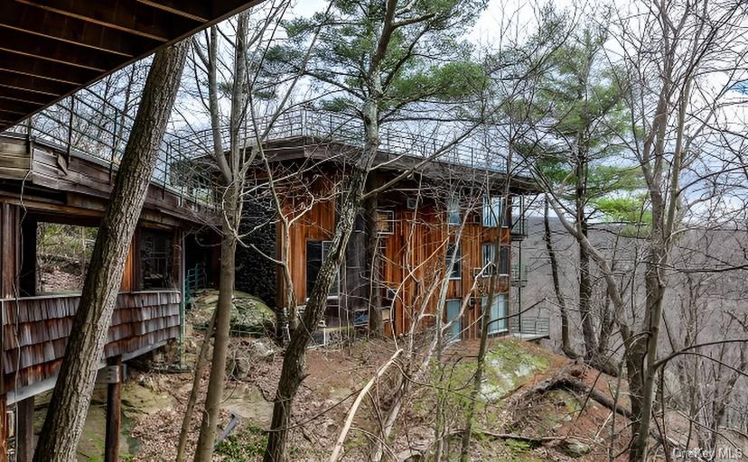 APPROVED OFFICE USE WITH 35 PARKING SPACES OR RESIDENTIAL OPPORTUNITIES. MANY \nPOSSIBLE USES WITH AN EXISTING SITE PLAN FOR OFFICE USE THAT RUNS WITH THE LAND \nPLUS RECENT R-2 ZONING CHANGE WITH R-3 USES PERMITTED BY ADAPTIVE REUSE \nPROVISION. Permitted Community Benefit Facilities are Library, Private School, Religious, and Child day care/nursery school. 12,650 UNIQUE SQ FT OF MID CENTURY MODERN DESIGNED SPACE ON MOUNTAIN TOP ESTATE COMPOUND OF 3.25 AC. AMAZING VIEWS. 45 MILES FROM MANHATTAN. Three Buildings of different sizes, 7474 sq ft, 3578 sq ft and 1152 sq ft, allow multiple tenant, user or development opportunities. The complex was meticulously designed to minimally disturb the environment. The buildings are connected by enclosed and covered walkways and decks and green roofs. It is surrounded by State park land and there can be no development around the property. A secluded private road provides gated entrance to the property. Property is sold in \"as is where is OneKeyMLS 940097