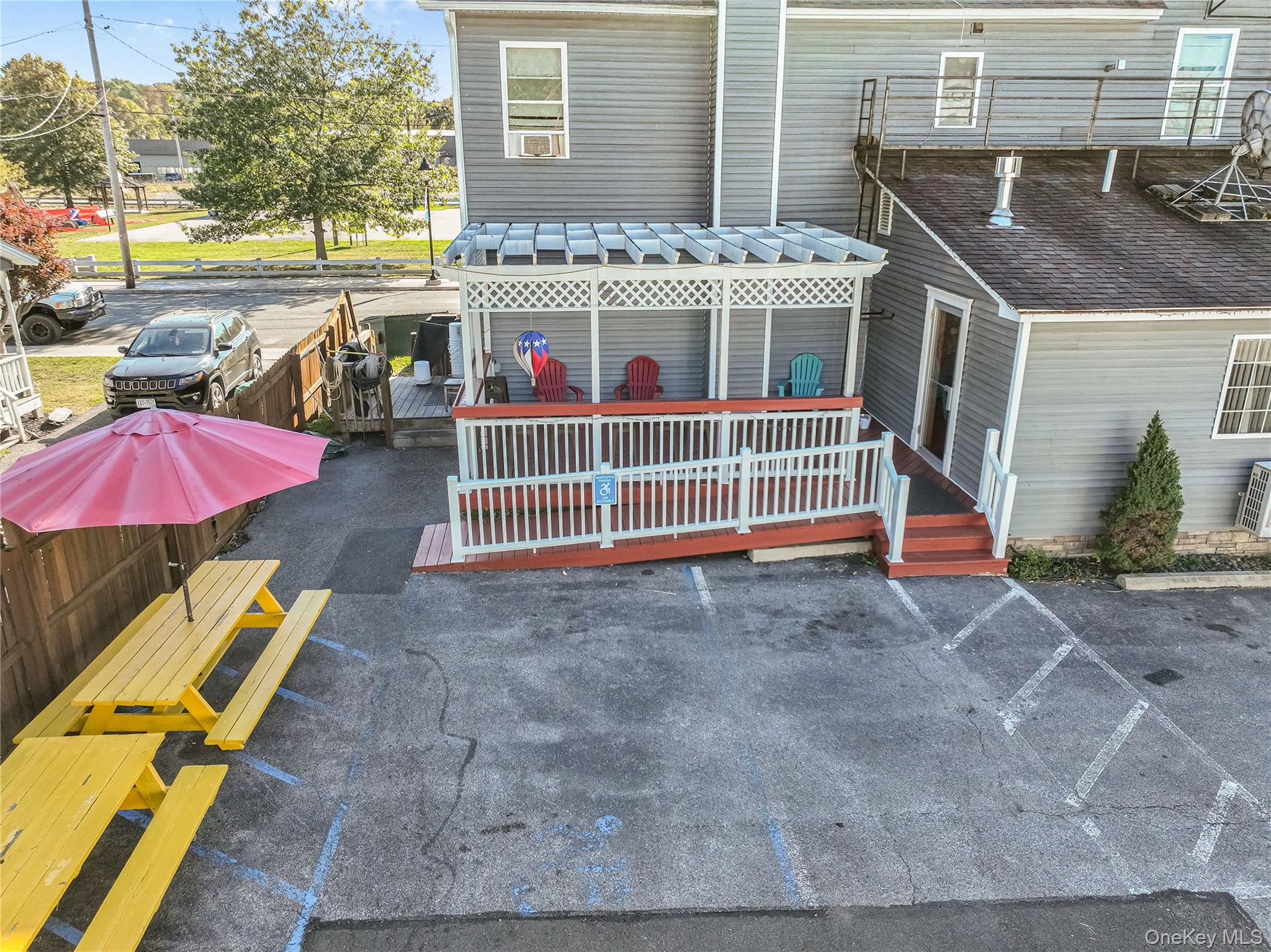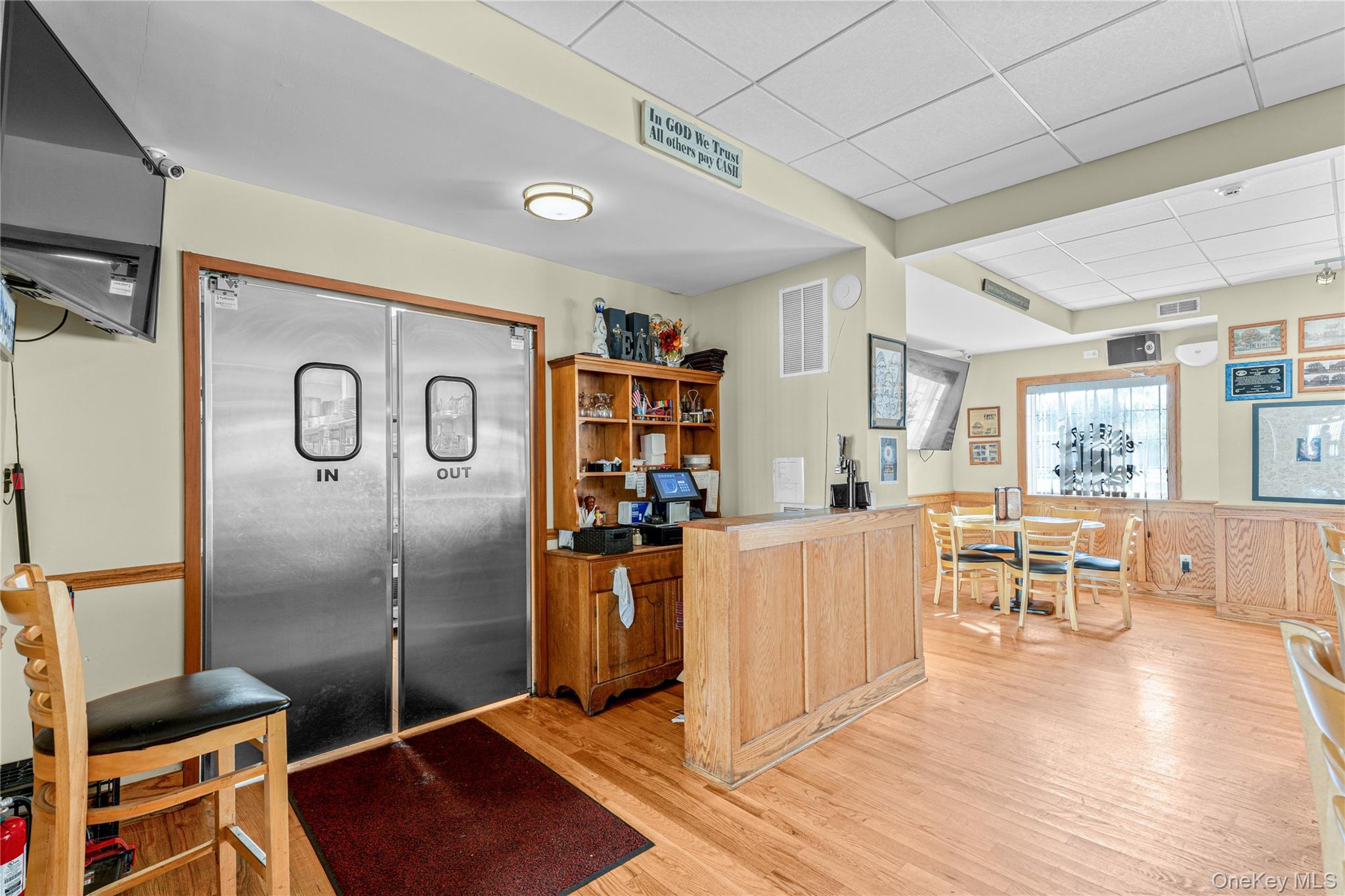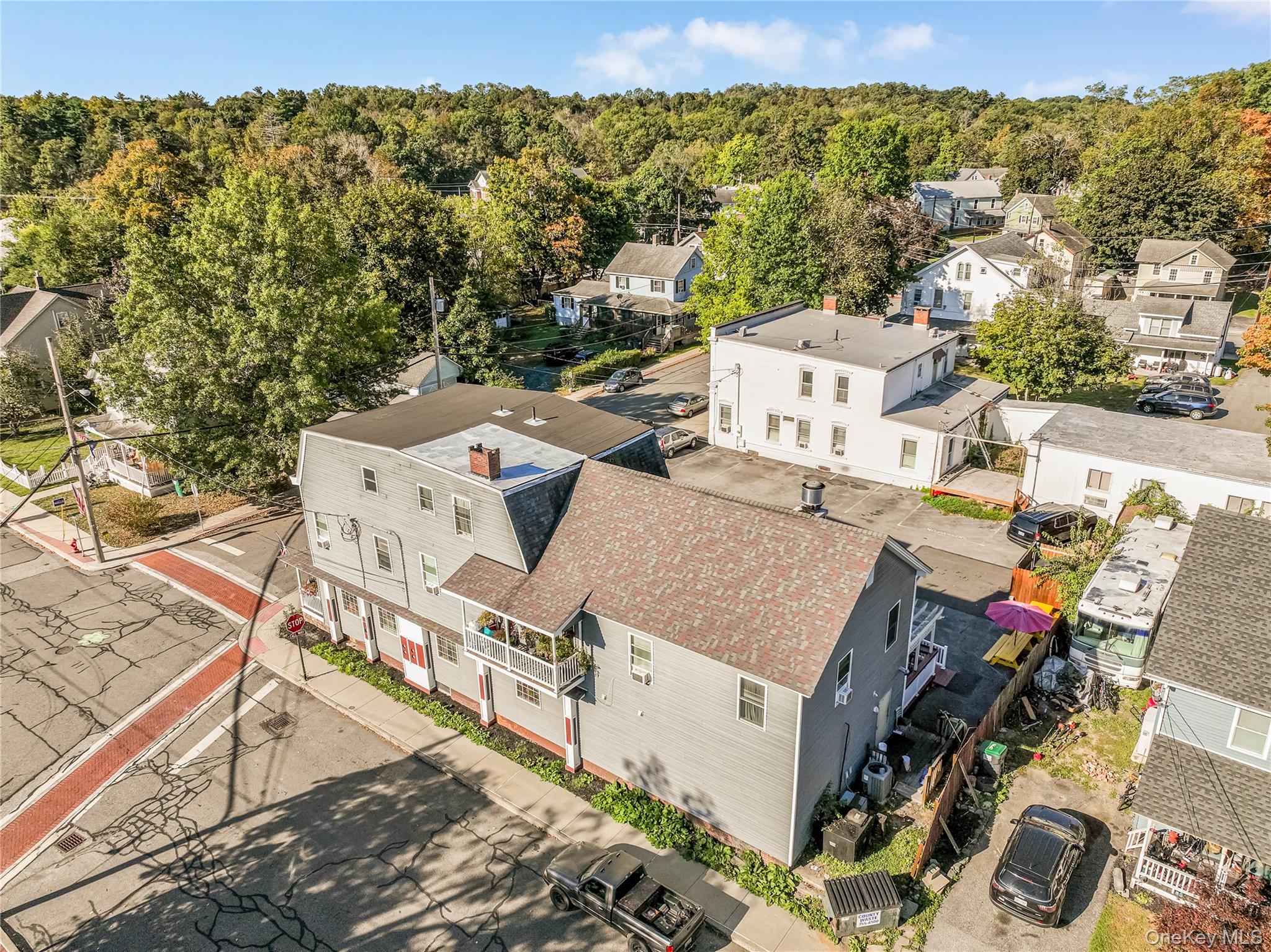 This exceptional mixed-use commercial property in the Hamlet of Wallkill offers a rare investment opportunity combining a fully operational restaurant and bar on the first floor with four fully leased residential apartments above, all situated on a prominent 9,000 square foot corner lot. The building totals approximately 5,210 square feet and was completely renovated in 2016, ensuring modern systems, updated interiors, and a turnkey condition for both business and residential use.\nThe ground floor restaurant features a 20-seat bar and a spacious dining room, complemented by additional bar-top seating that creates a vibrant and inviting atmosphere. The commercial kitchen is fully equipped with an extensive array of professional-grade appliances, including a large walk-in cooler, designed to support efficient, high-volume food preparation. Ample basement storage provides valuable space for inventory and supplies, making operations smooth and well-organized. The restaurant also boasts a large covered front porch and a generous rear deck, both ideal for outdoor seating and seasonal gatherings, enhancing customer capacity and experience.\nThis establishment benefits from a loyal and well-established customer base, supported by an experienced and dedicated team of employees. As one of the few full-service restaurants in the town, it enjoys steady foot traffic, repeat business, and a strong presence in the community, contributing to consistent revenue and operational stability.\nAbove the restaurant, the second and third floors contain four residential apartments, all currently rented to reliable tenants. These units provide stable monthly rental income, complementing the commercial revenue from the restaurant. Each apartment was fully renovated alongside the rest of the building in 2016, featuring updated kitchens, bathrooms, and modern finishes. Separate utilities for each unit allow for straightforward management and billing, while the diverse tenant base adds to the property's strong income profile.\nThe building OneKeyMLS 923800